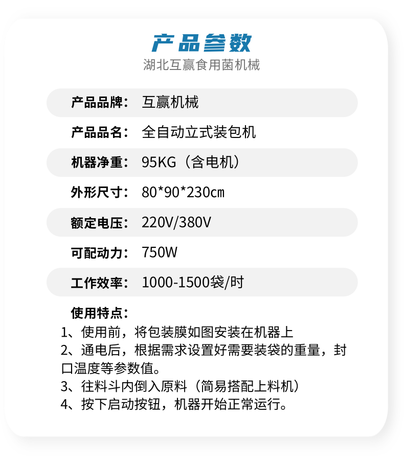 近年來代料香菇裝袋機(jī)的發(fā)展,越來越迅猛。其規(guī)模不斷擴(kuò)大,品種不斷增多,地域限制越來越少。是農(nóng)民增收的可靠保障,也是地方政府的經(jīng)濟(jì)支柱。自動(dòng)套袋食用菌裝袋機(jī)廣泛用在香菇、木耳、平菇、金針菇、茯苓、灰樹花、姬菇、秀珍菇等食用菌種植領(lǐng)域。是工廠、基地、合作社、家庭農(nóng)場(chǎng)理想的工廠化生產(chǎn)機(jī)械。生產(chǎn)規(guī)模的大小可根據(jù)資金、銷售量、經(jīng)營(yíng)方式、技術(shù)力量、資源條件等綜合因素來確定,可用單機(jī),也可組合設(shè)計(jì)成半機(jī)械化...